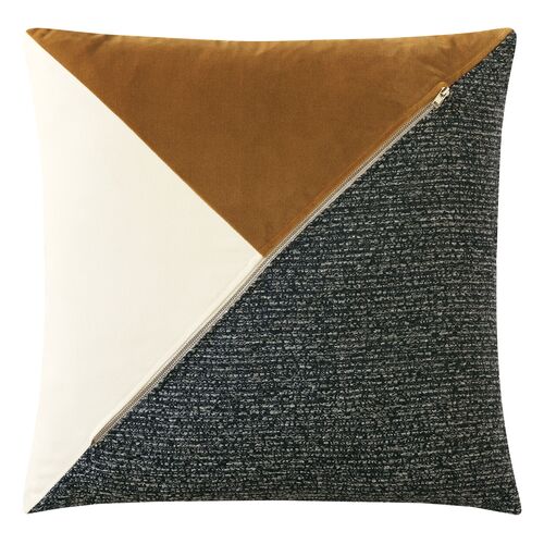 Asher Colorblock Zipper Pillow, Ivory/Gold/Charcoal