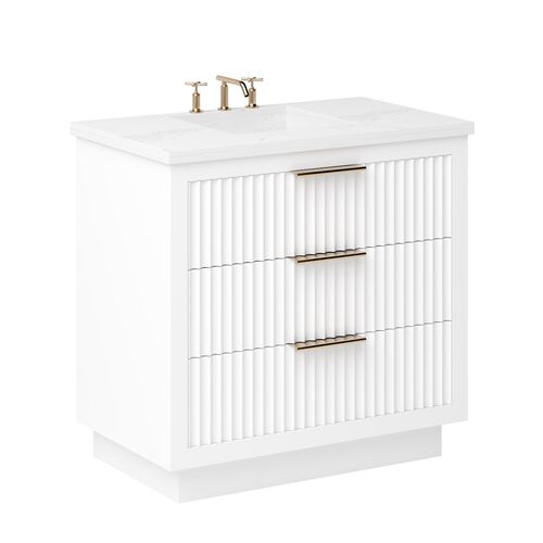 Charlie 36" Quartz Top Single Sink 3-Drawer Bathroom Vanity Set