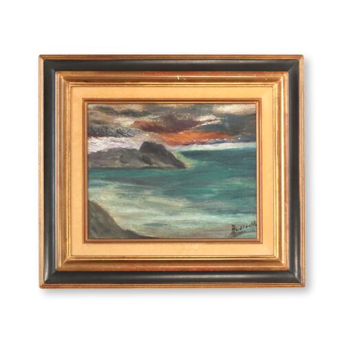 Atmospheric French Rocky Coast Painting