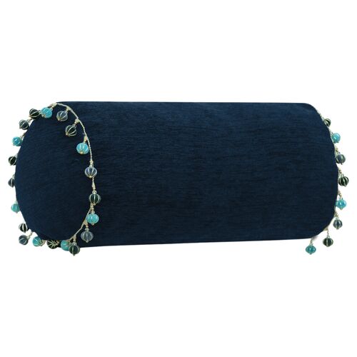 Audrey 9x18 Beaded Bolster Pillow, Blue