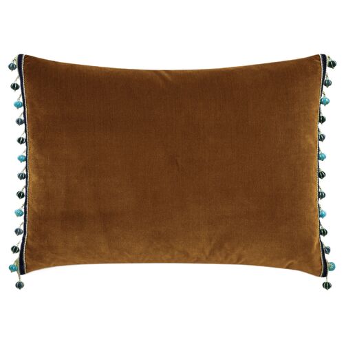 Audrey 16x22 Velvet Beaded Trim Lumbar Pillow, Gold