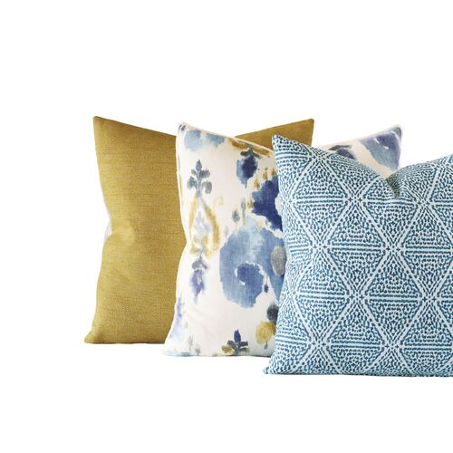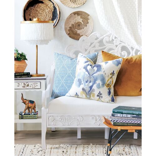 Azalea Geometric Pillow, Blue/White