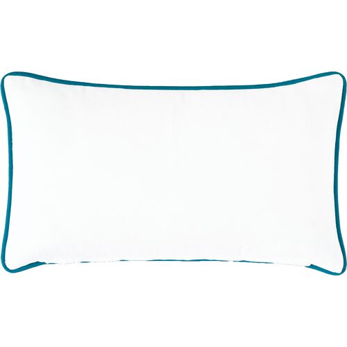 Azalea 13x22 Hand-painted Lumbar Pillow, White/Blue