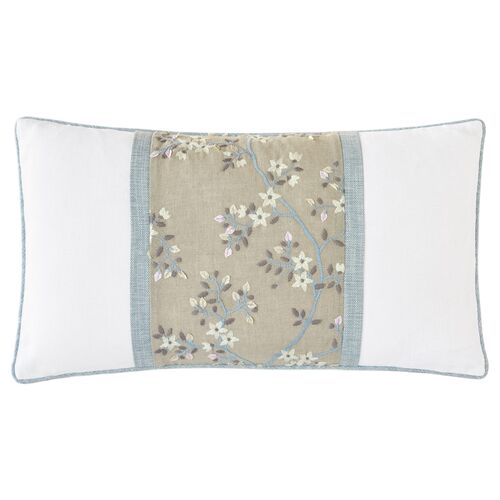 Bash 15x26 Embroidered Center Floral Lumbar Pillow, Beige/Blue