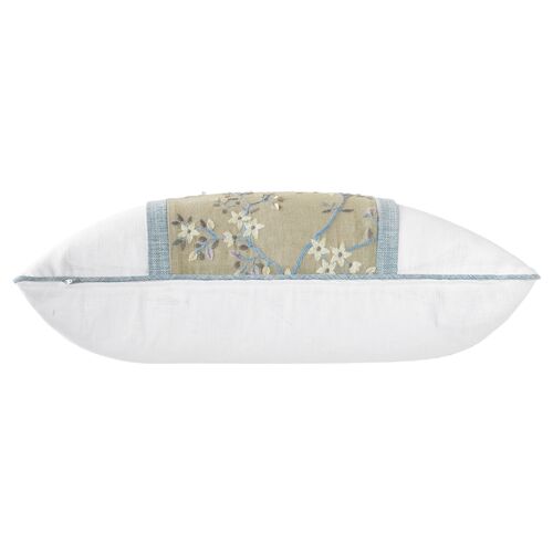 Bash 13x36 Embroidered Floral Long Lumbar Pillow, Beige/Blue