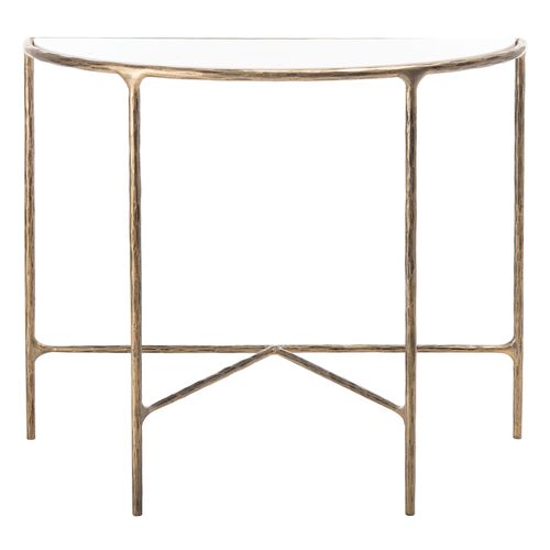 Kayla Marble Top Demilune Console Table, White/Gold