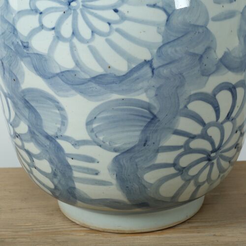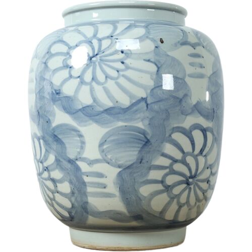 Beatrice Sun Flower Motif Vase, Blue/White