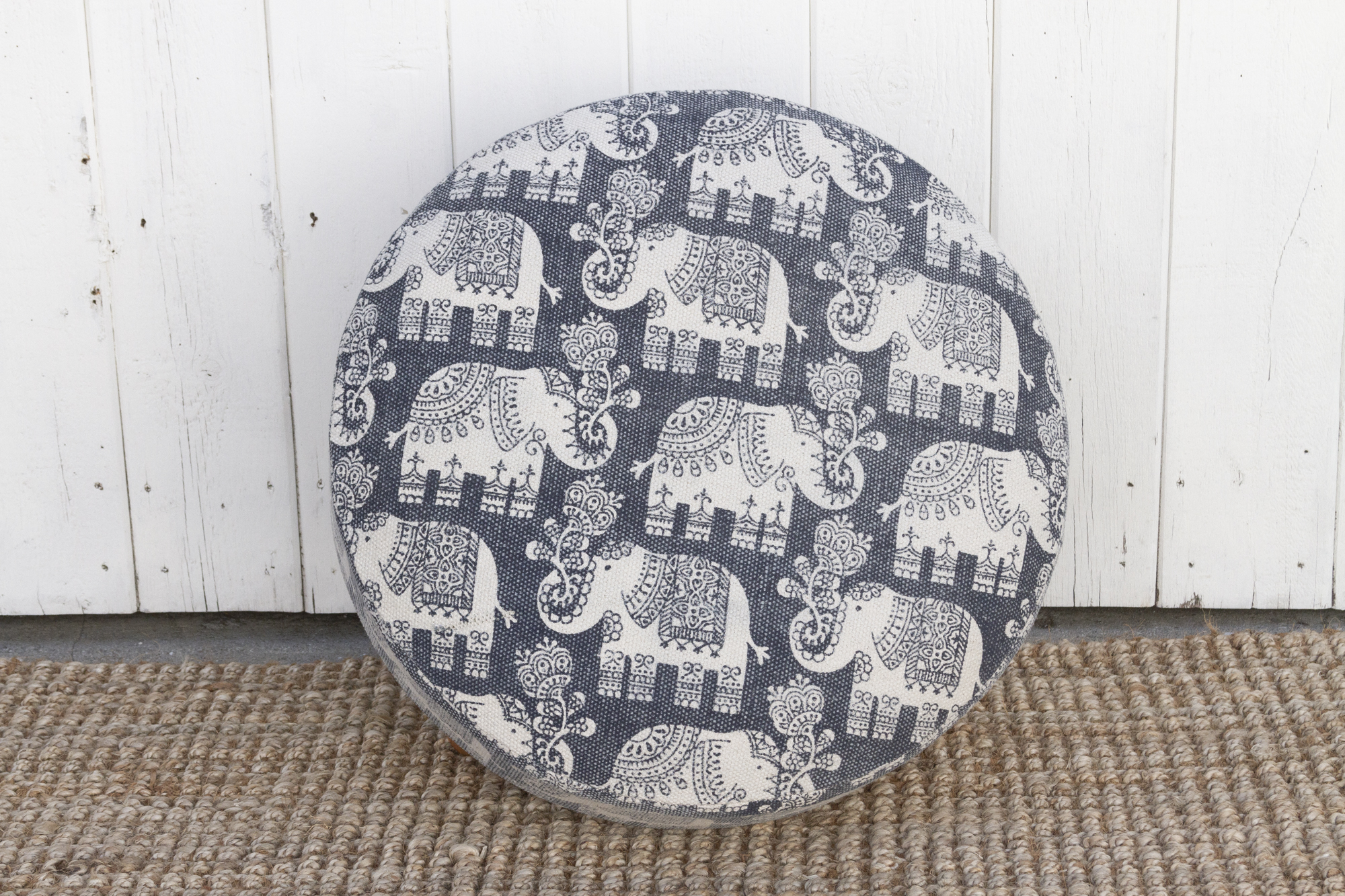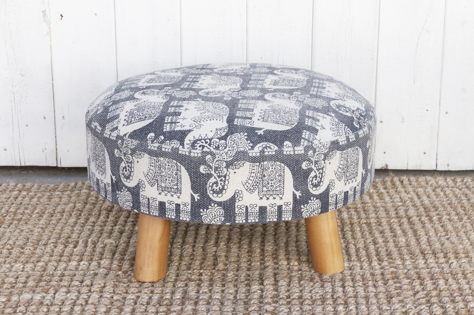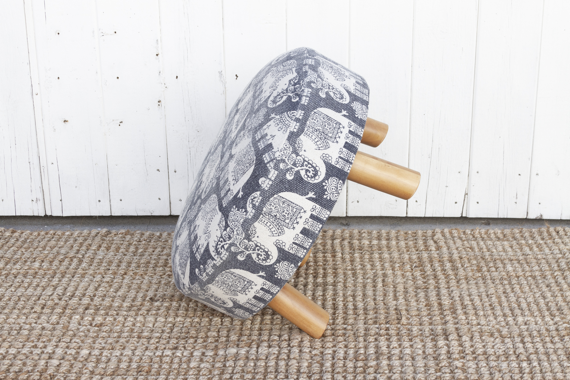 Blue & White Elephant Dhurrie Ottoman