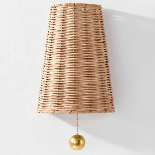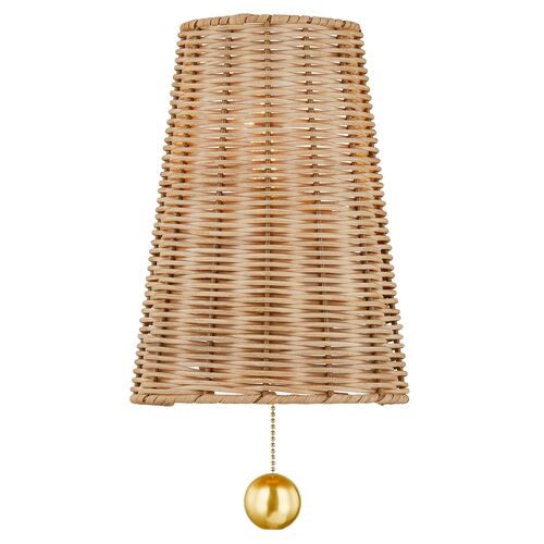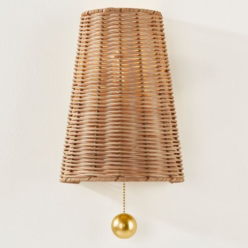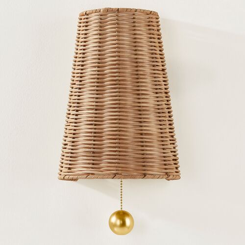 Bodie 14" Wicker Wall Sconce, Aged Brass/Natural is currently out of stock