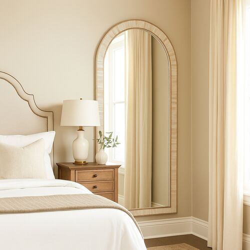 Bramwell Arched Bone Inlay Floor Mirror, Cream/Brown