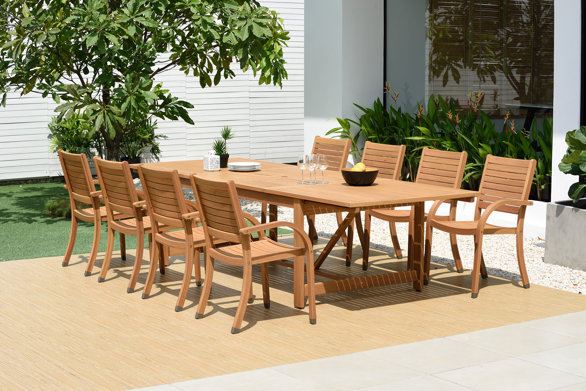 Branwyn 11-Pc Rectangular Extension Outdoor Eucalyptus Dining Set, Natural is currently out of stock