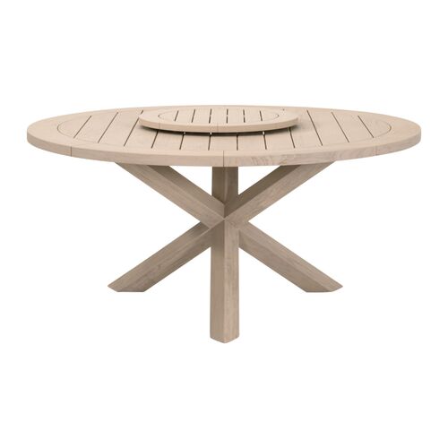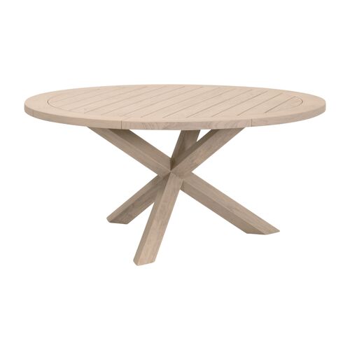Briar Outdoor 63" Round Dining Table, Washed Ever Teak