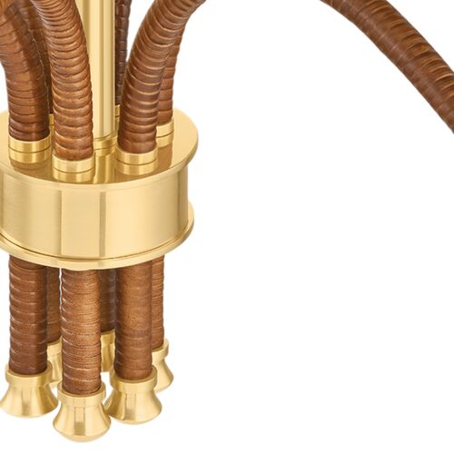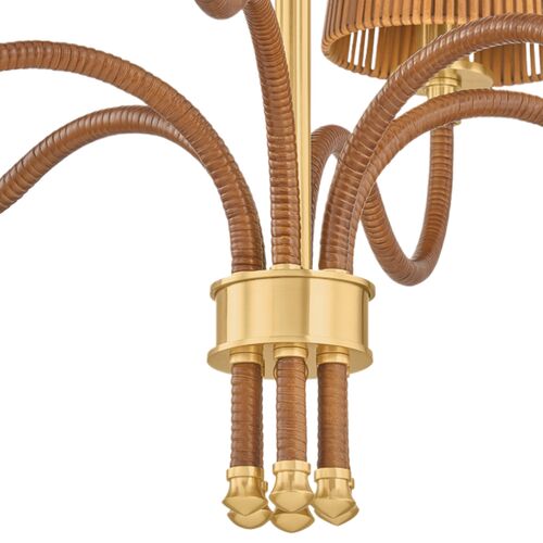 Bridget Rattan Chandelier, Natural/Aged Brass
