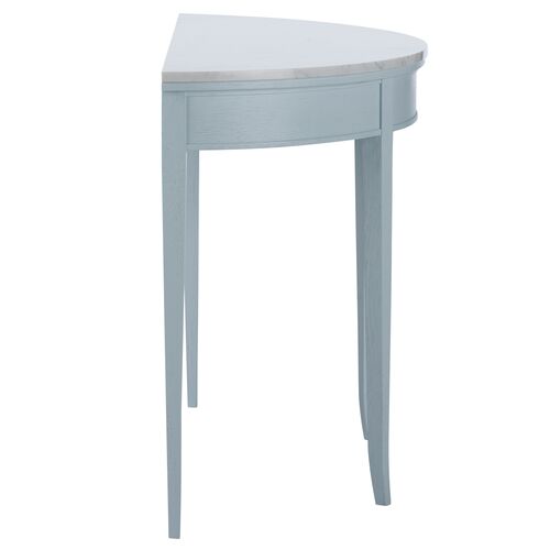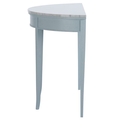 Brussels Marble-Top Demilune Console Table, Pale Blue