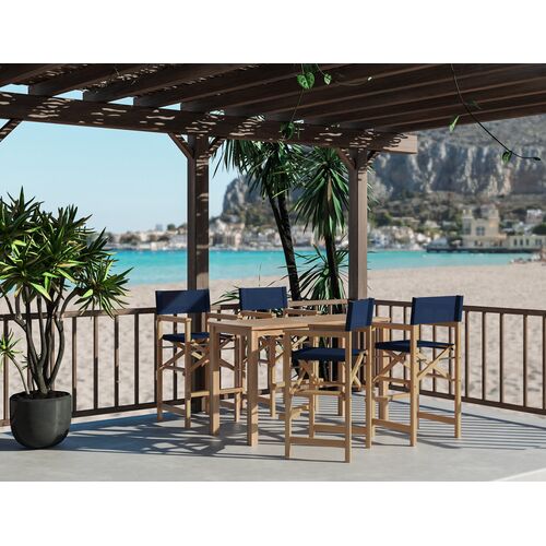 Calindra 5-Piece Outdoor Rectangular Teak Counter Height Dining Set w/ Folding Armchairs