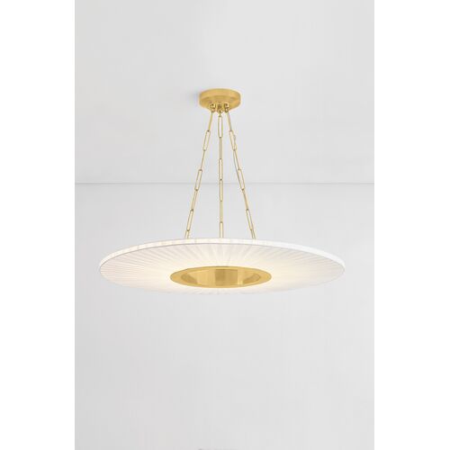 Caliora Chandelier, Aged Brass/White Silk