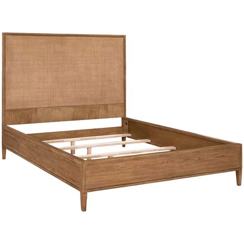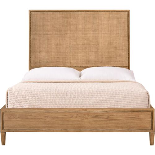 Calloway Wooden Raffia Panel Bed, Natural