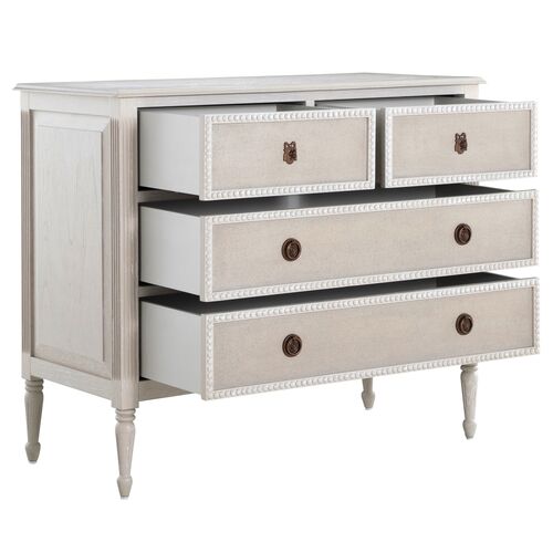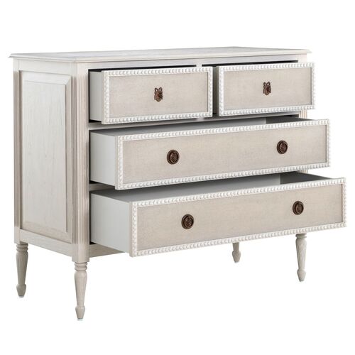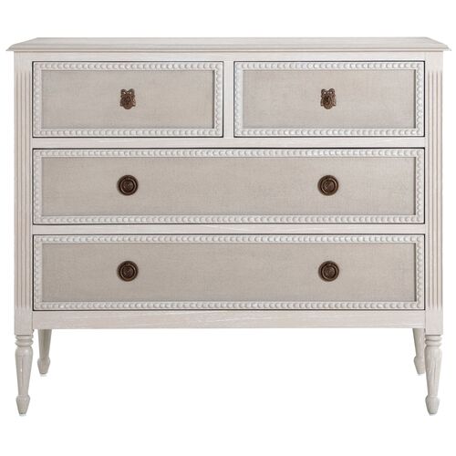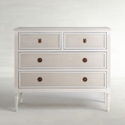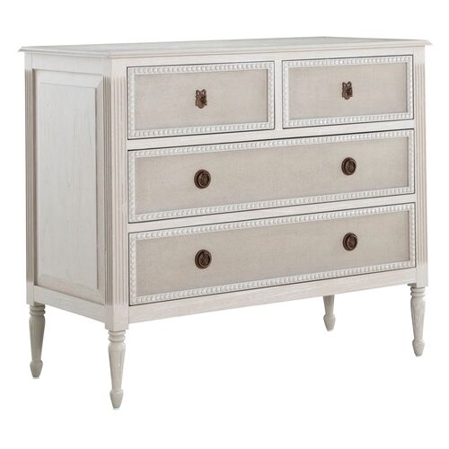 Caroline Chest, 4-Drawer, Cerused White/Painted Burlap