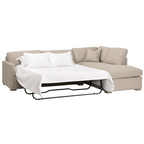 Carson 112" Boucle Slim Arm Sleeper Queen Sectional, LiveSmart Gellar Jute