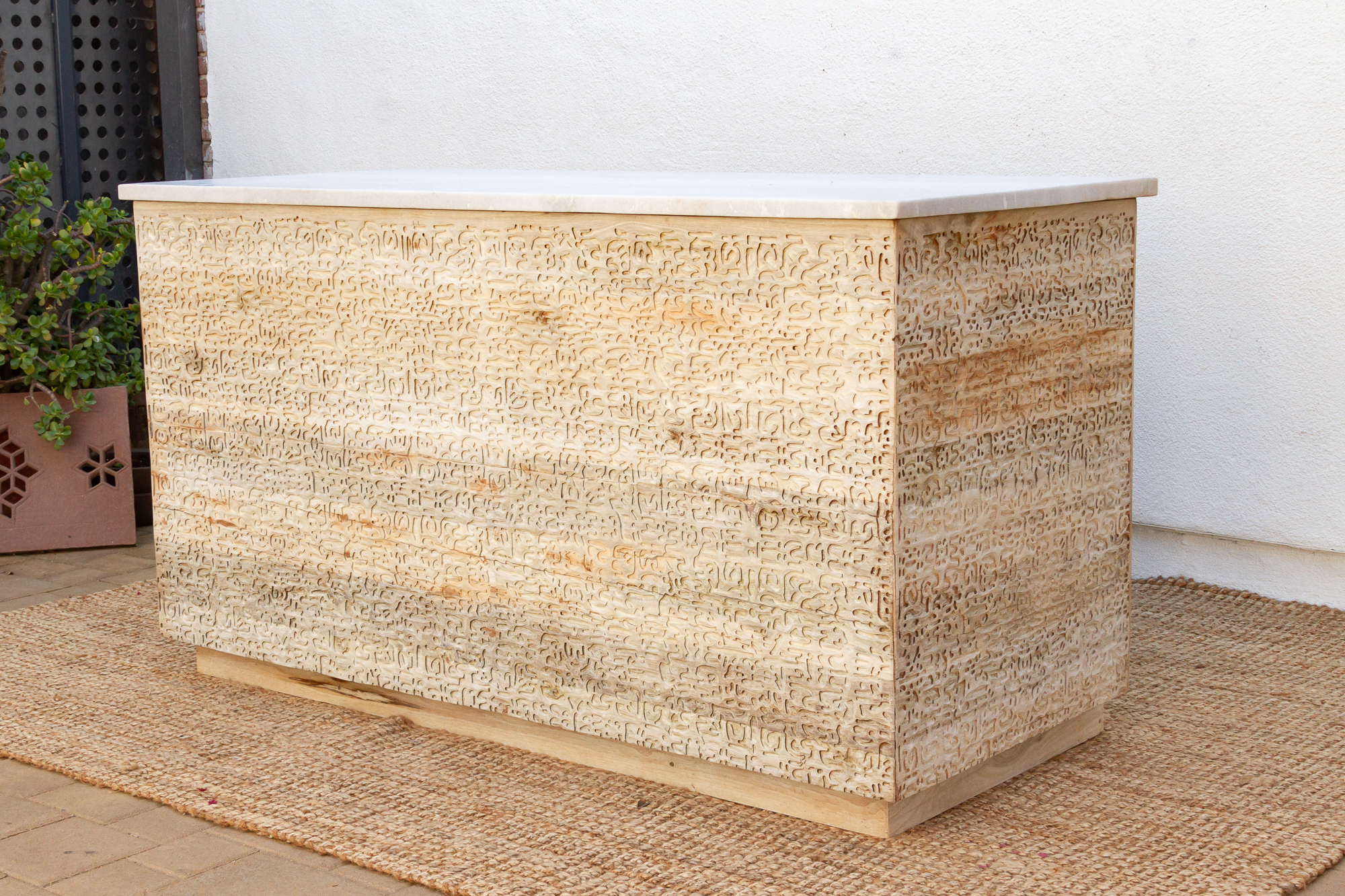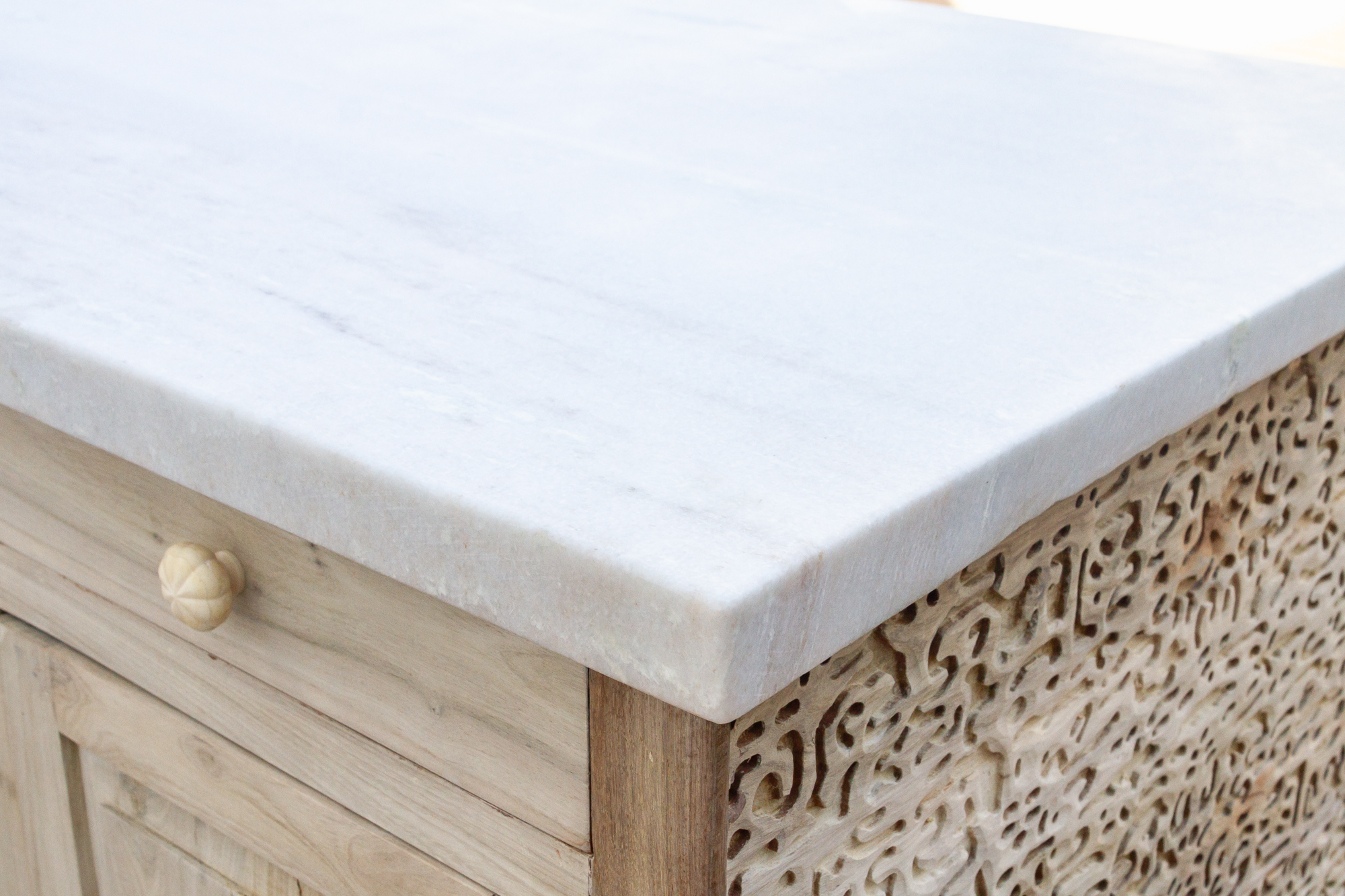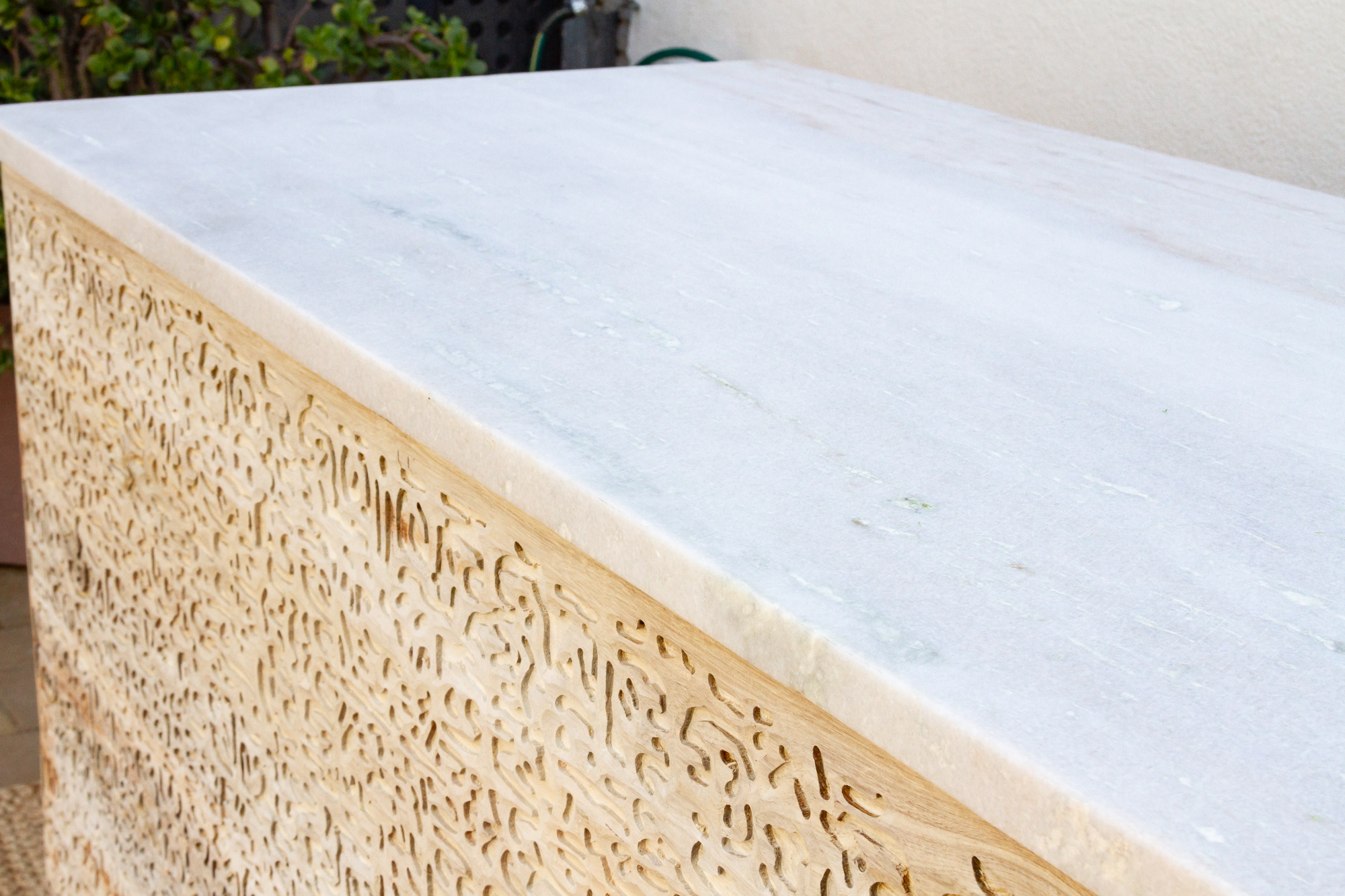 Carved Teak Counter Bar with Marble Top
