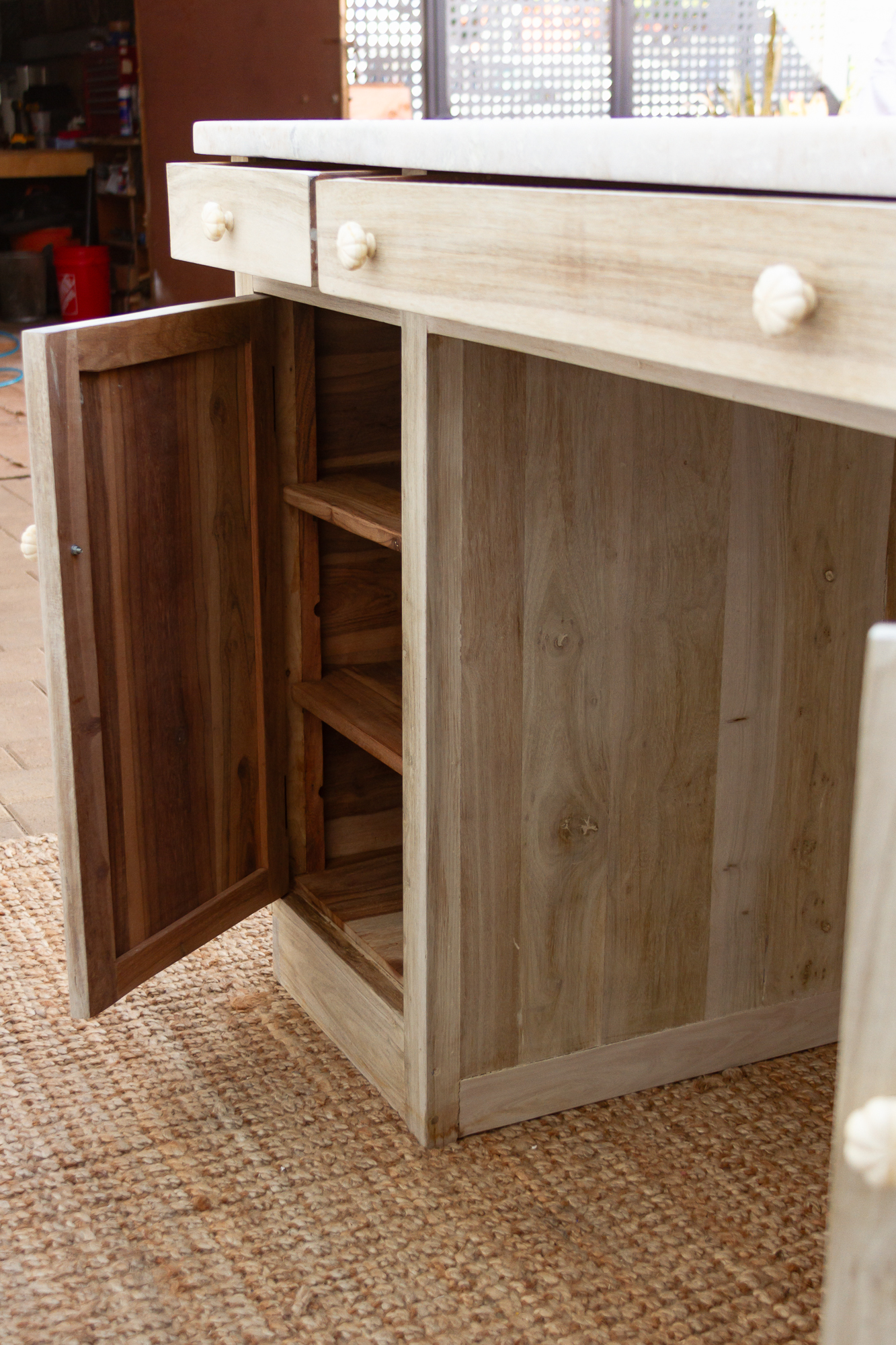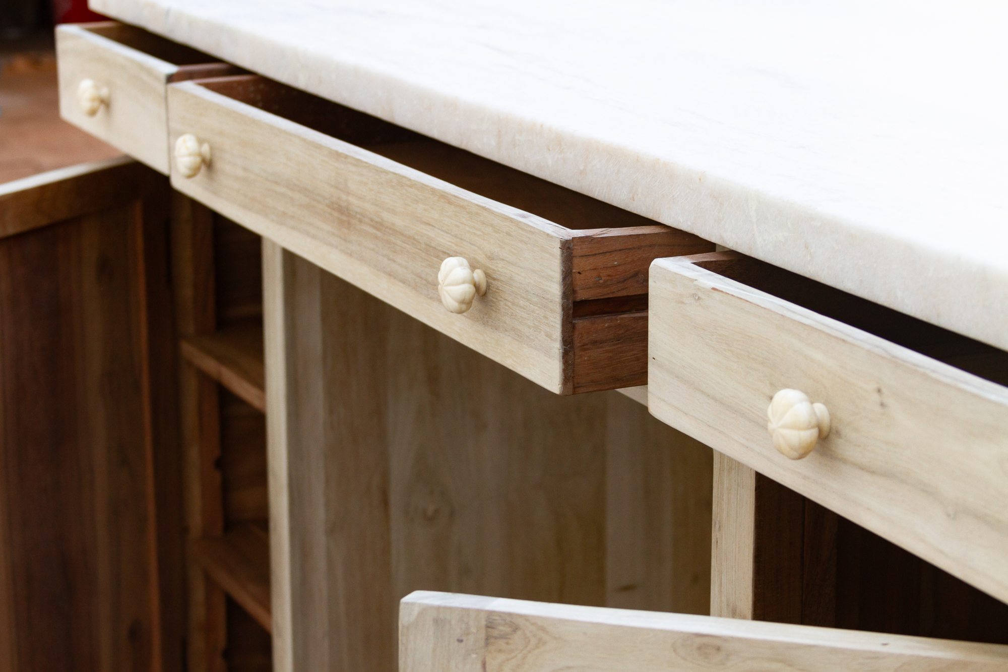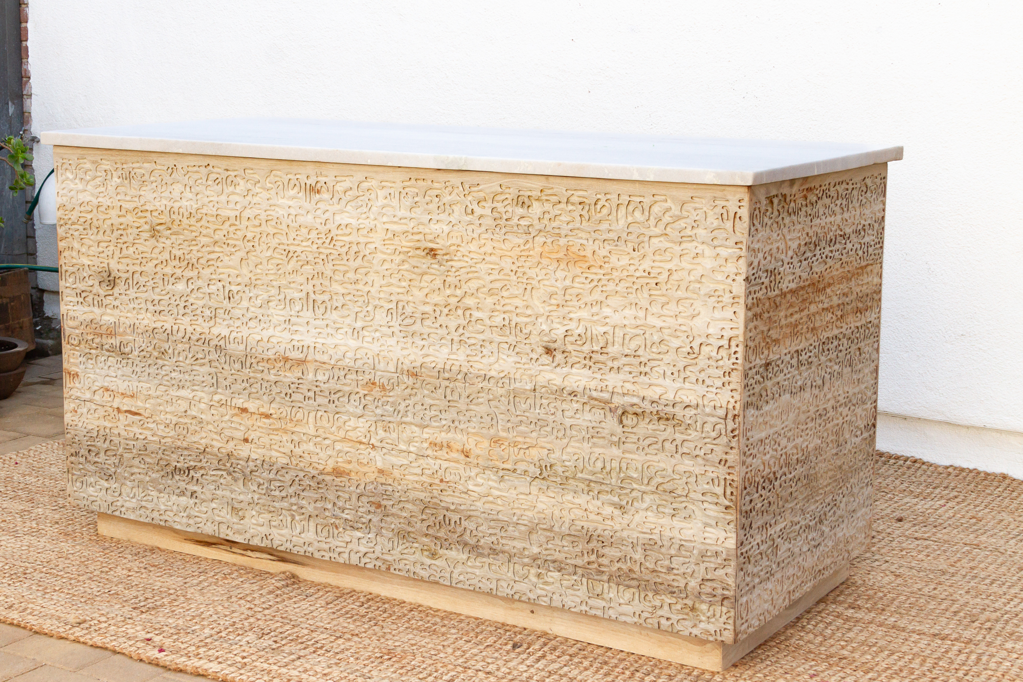 Carved Teak Counter Bar with Marble Top