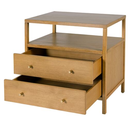 Cecilia 2-Drawer Wide Nightstand w/ Open Shelf