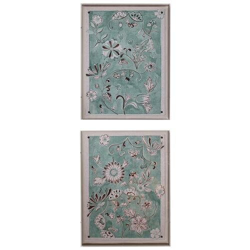 Celadon Flowers II 26"x20", Green
