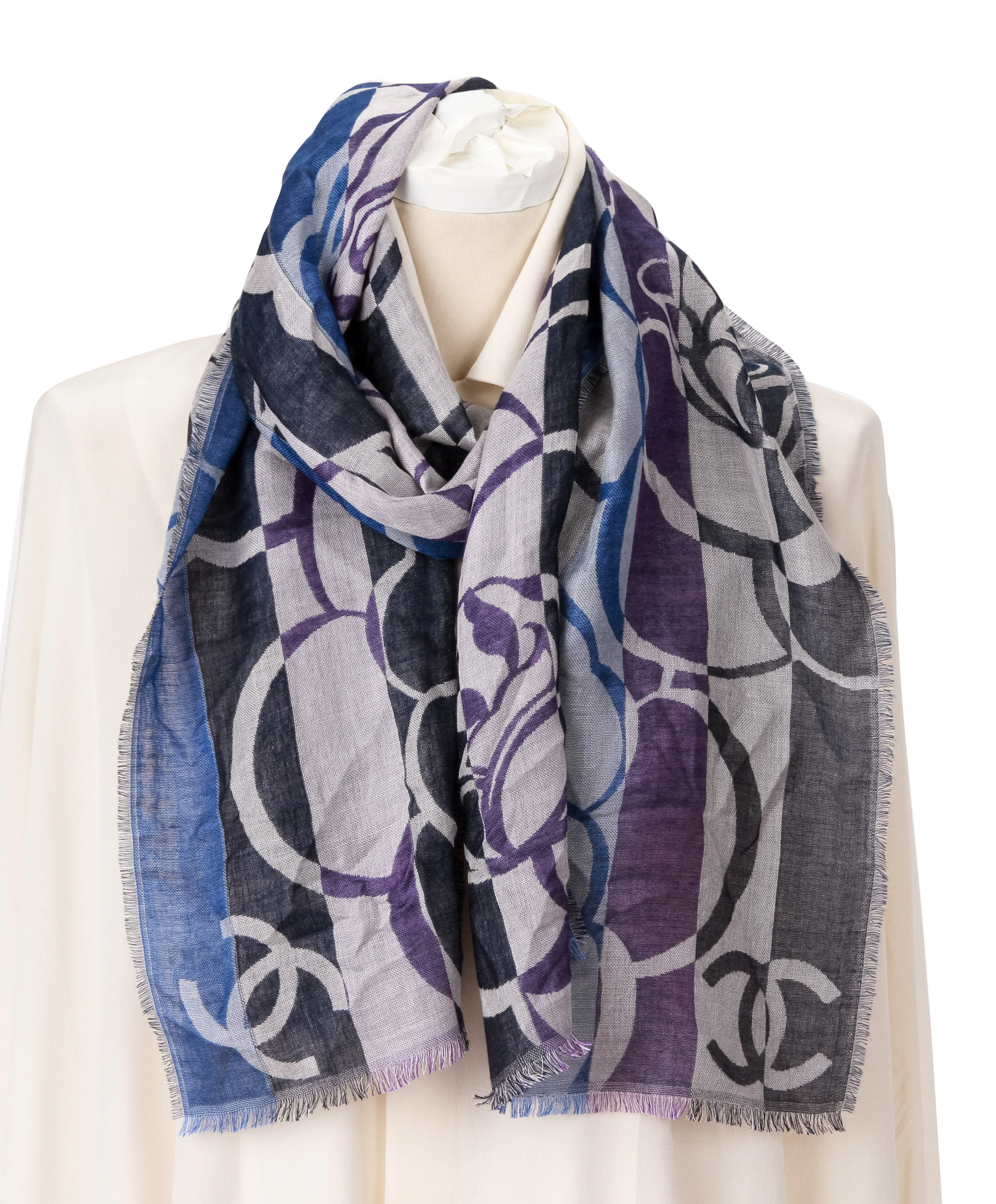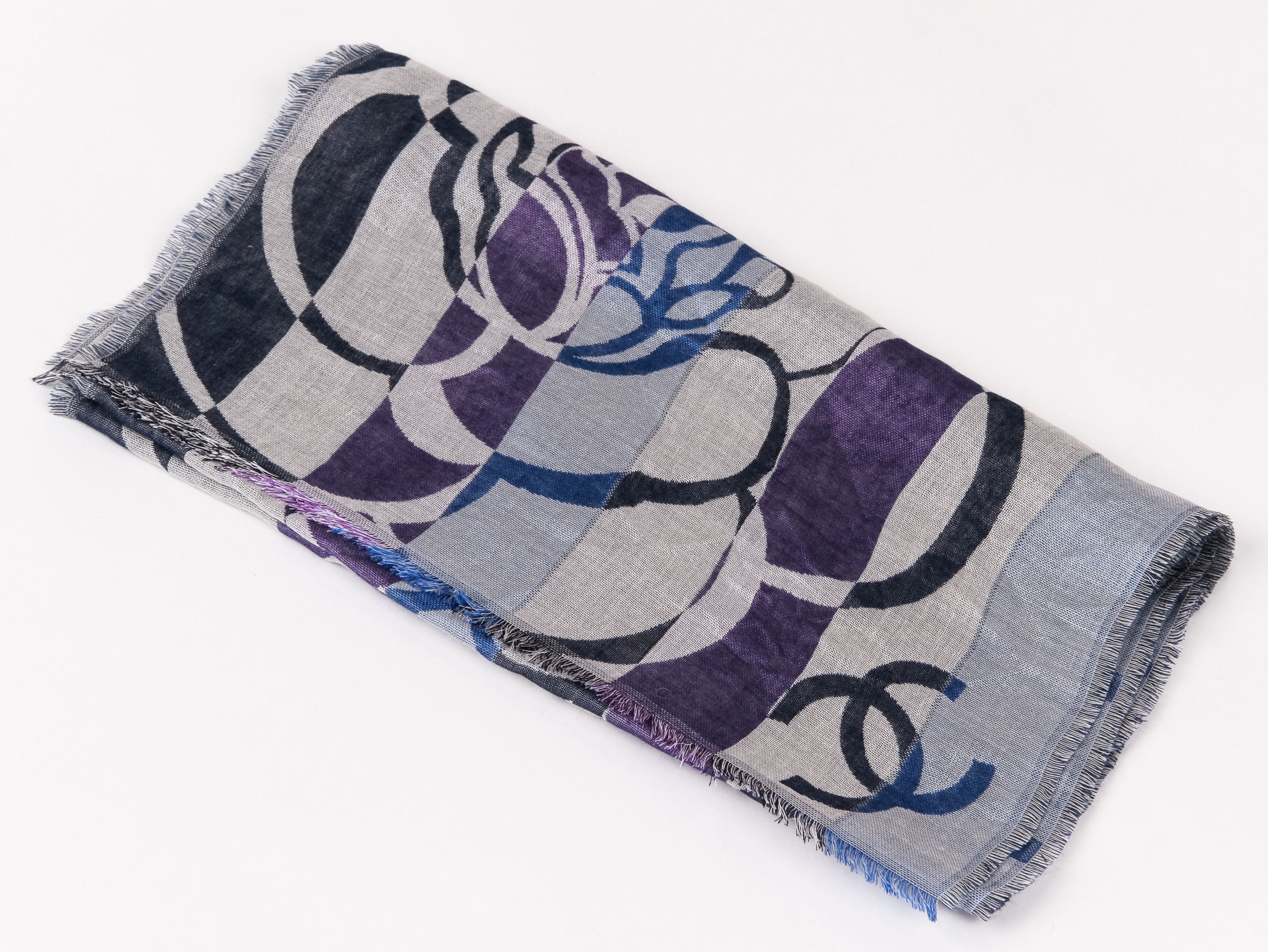 Chanel Floral stripe cashmere silk scarf