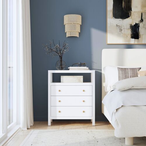 Charlie 27" 3-Drawer Tall Nightstand w/ Open Shelf on Top