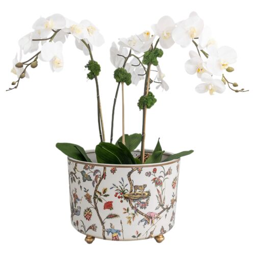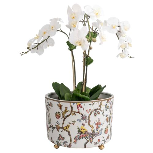 Chinoise Exotique Center Basin Planter, White