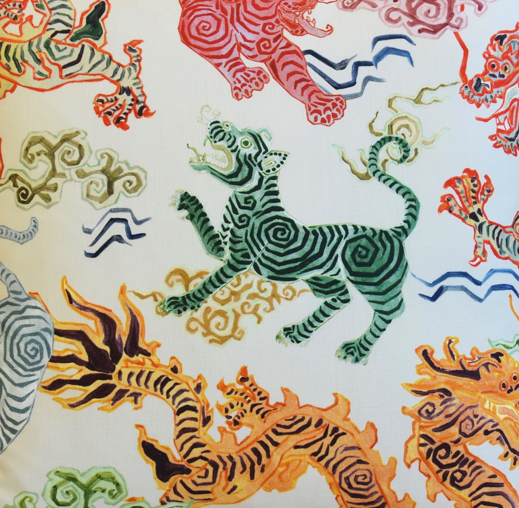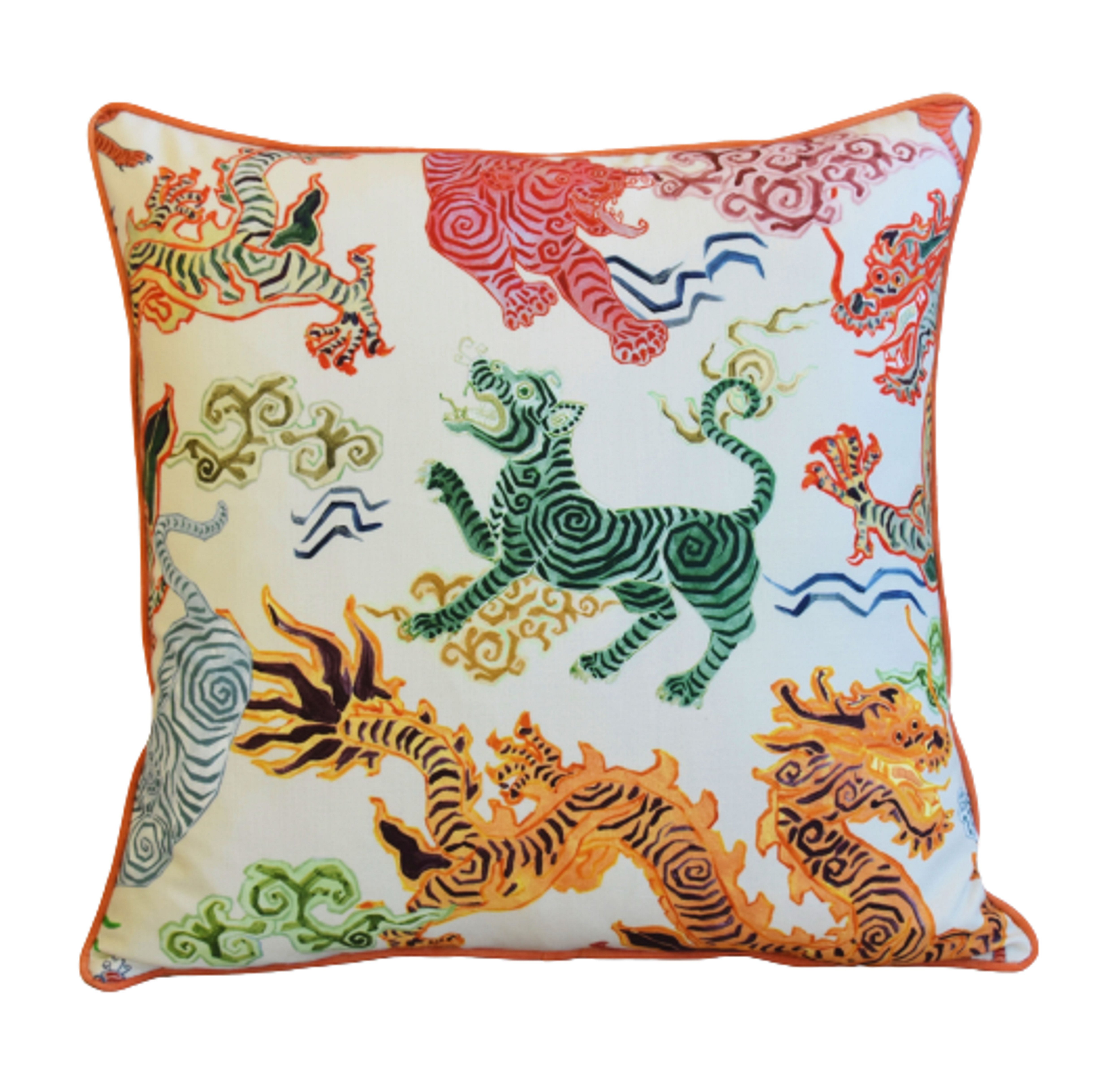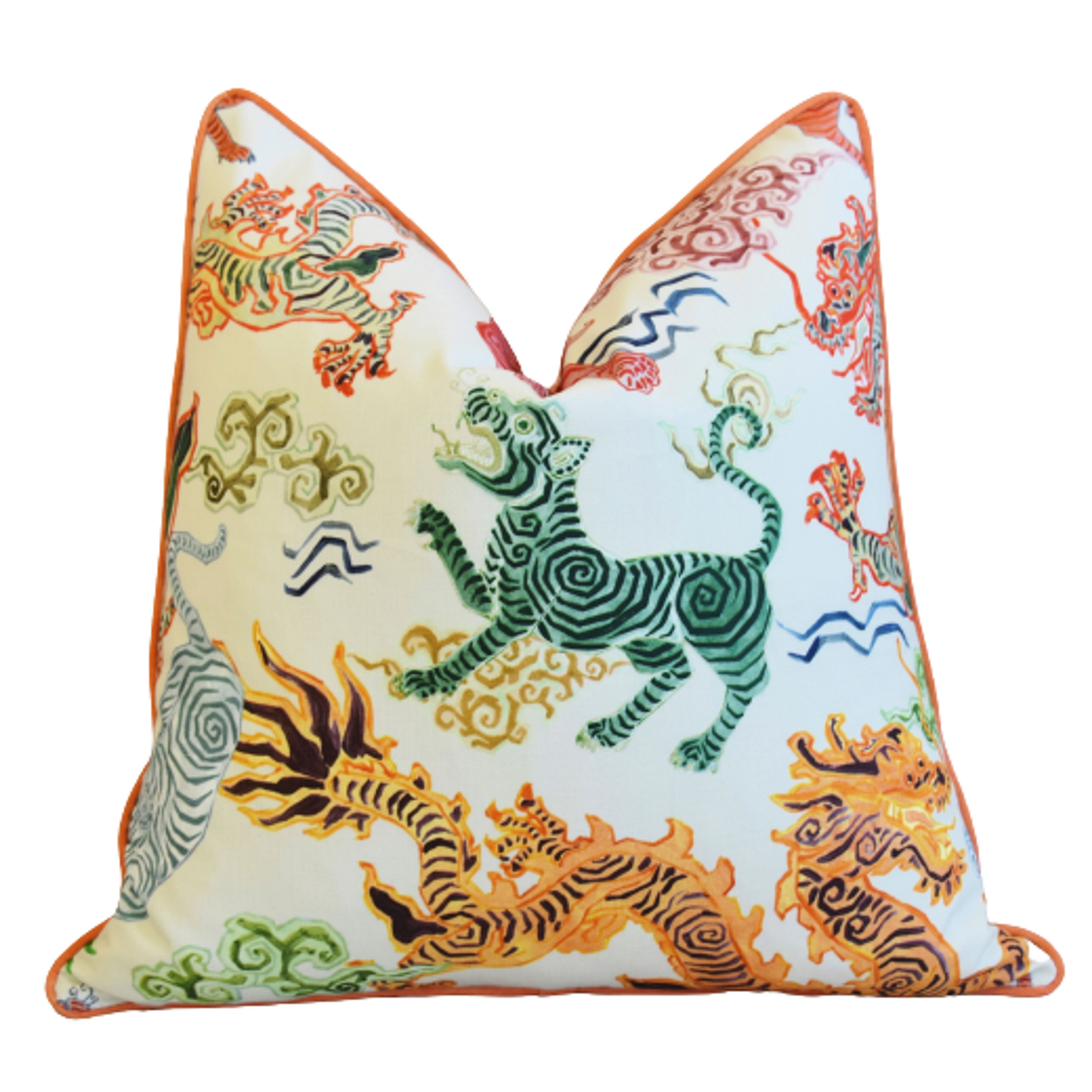 Chinoiserie Asian Colorful Dragon Pillow