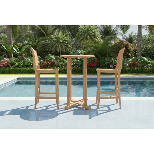 Clemente 3-Piece Round Teak Outdoor Bar Height Dining Set, Natural