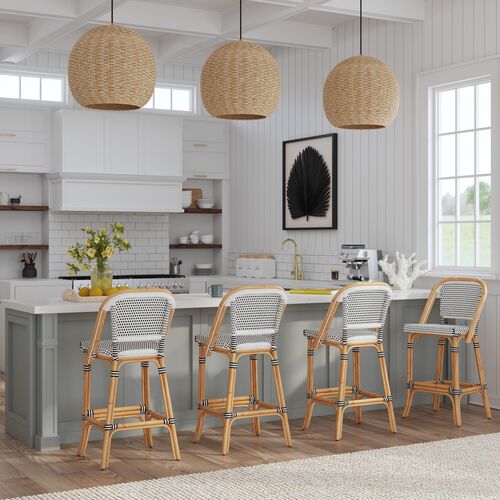 White and Rattan Bar Stools