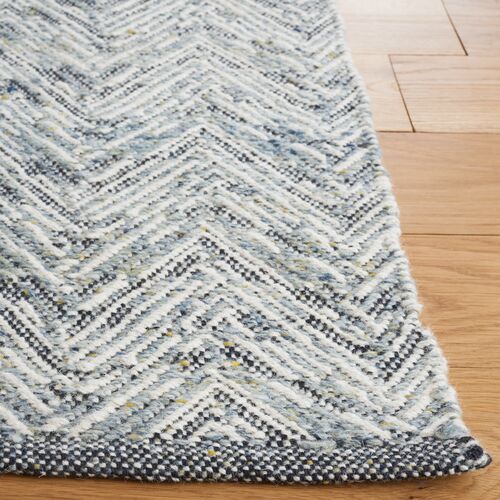 Evie Hand Woven Wool/Jute Rug, Blue/Light Grey