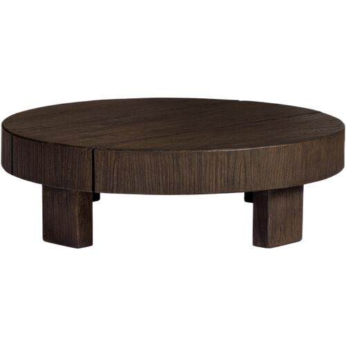 Coachbuilt 40" Round Reclaimed Elm Coffee Table, Brown