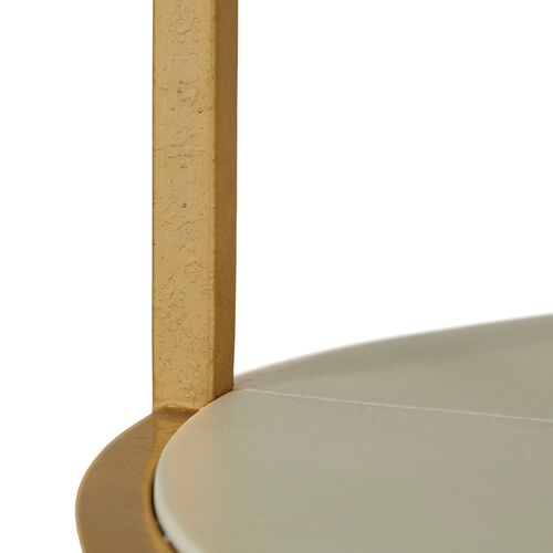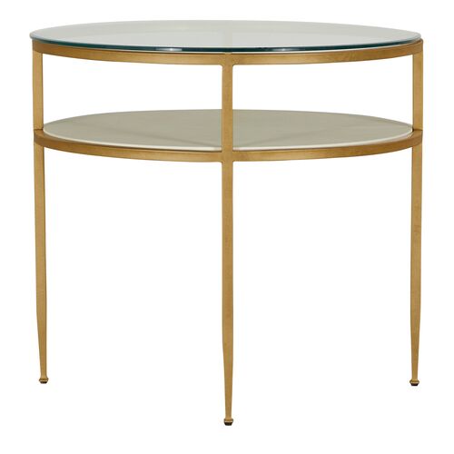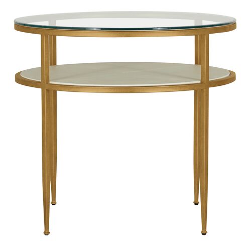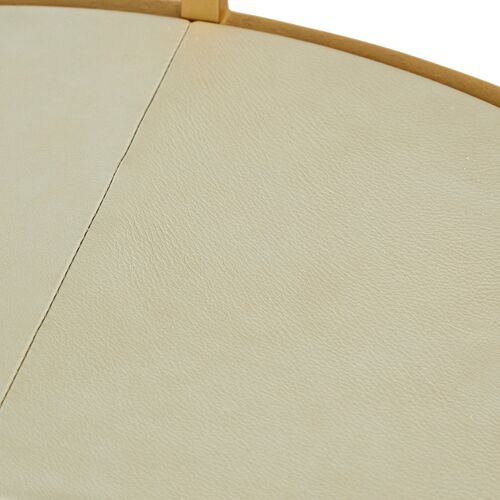 Constance Metal Round Side Table, White Leather/Antique Brass Leaf