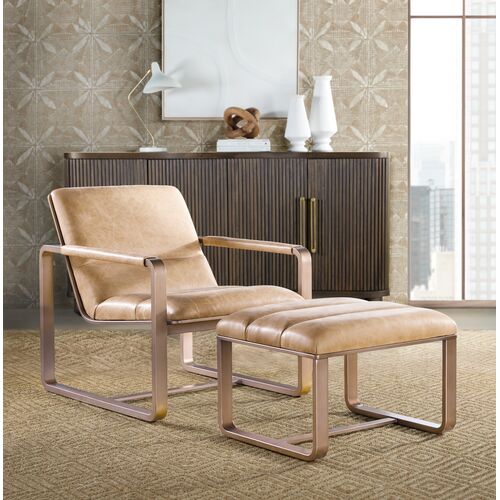 Cooper Leather Ottoman, Brown