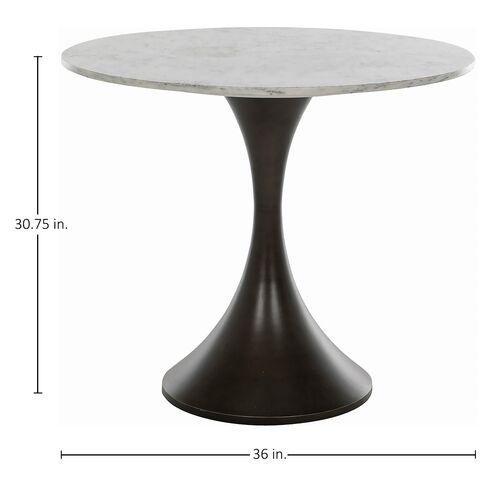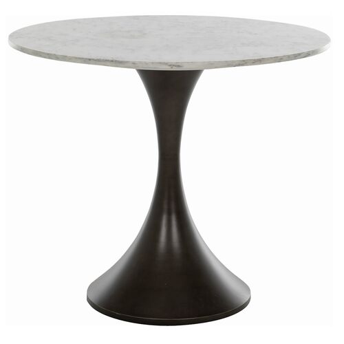 Cortez Marble Round Pedestal Bistro Table, White & Gold Flecked Marble/Burnished Bronze