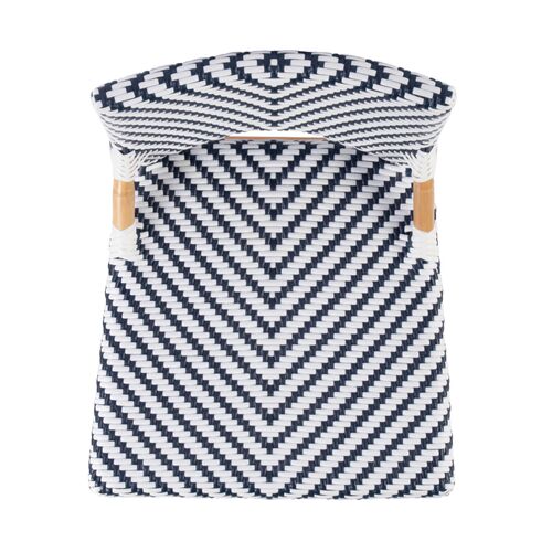 white/navy dot / natural rattan frame