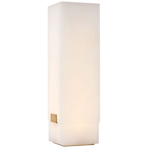 Covet 16" Rechargeable Table Lamp, Alabaster/Antique-Burnished Brass
