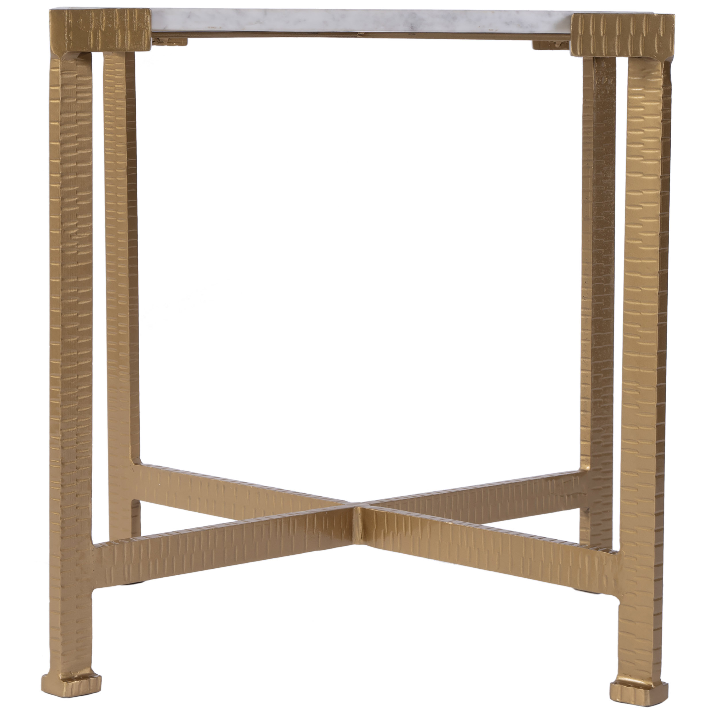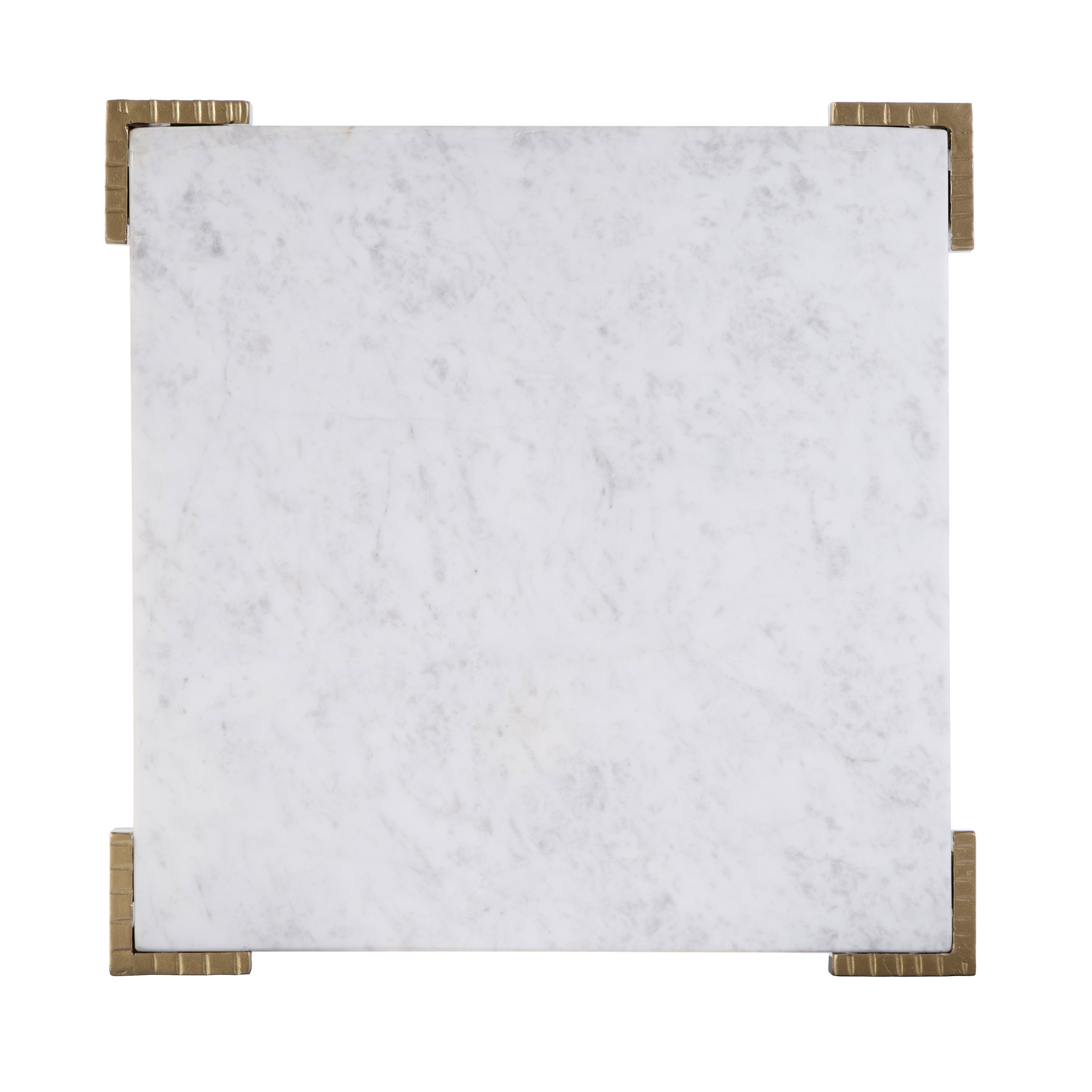 Indigo Square Marble Top End Table, White/Antique Gold