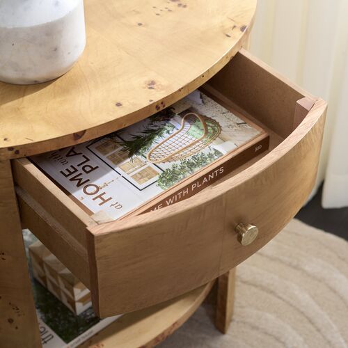 Dalorin 1-Drawer Burl Veneer Accent Table, Natural