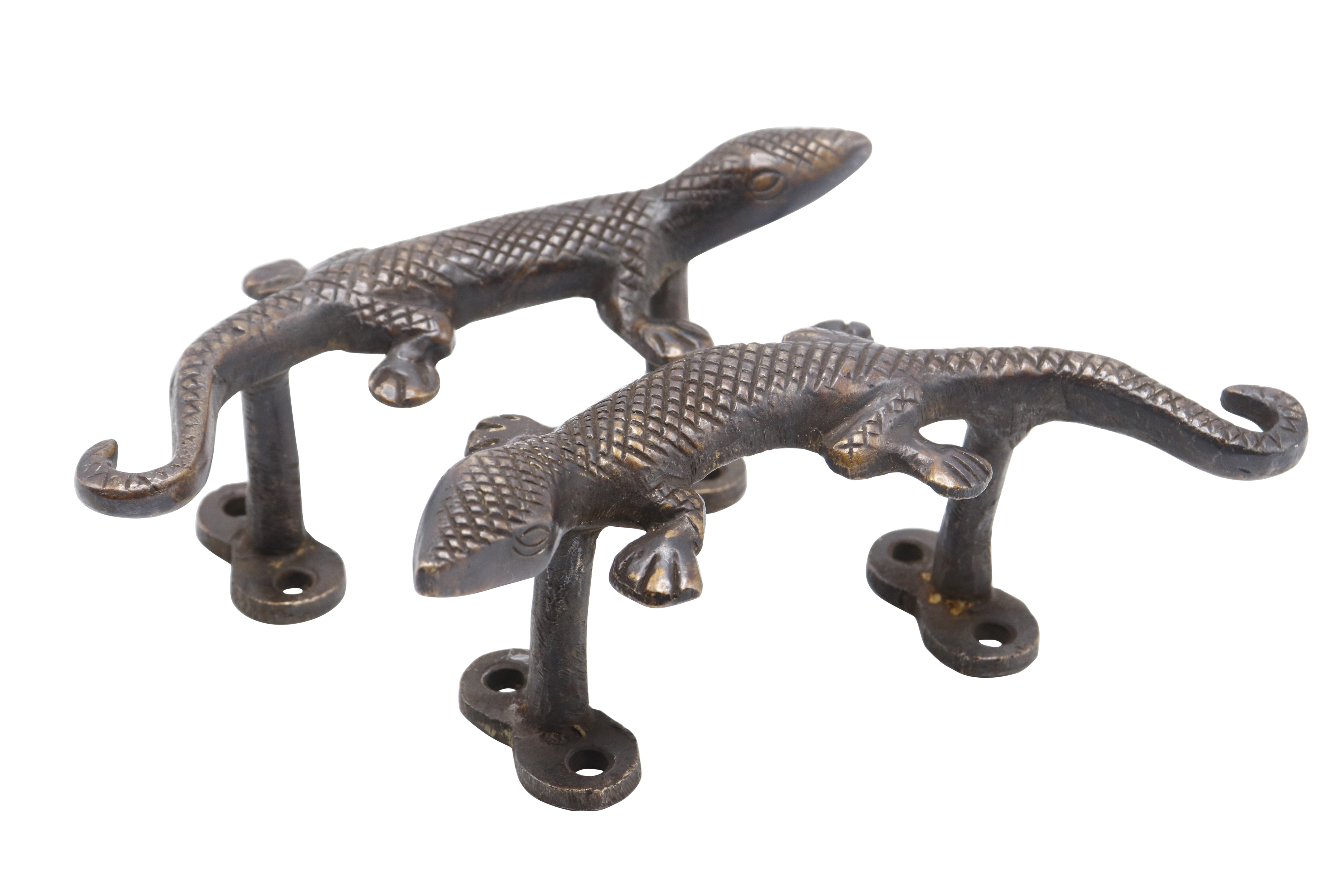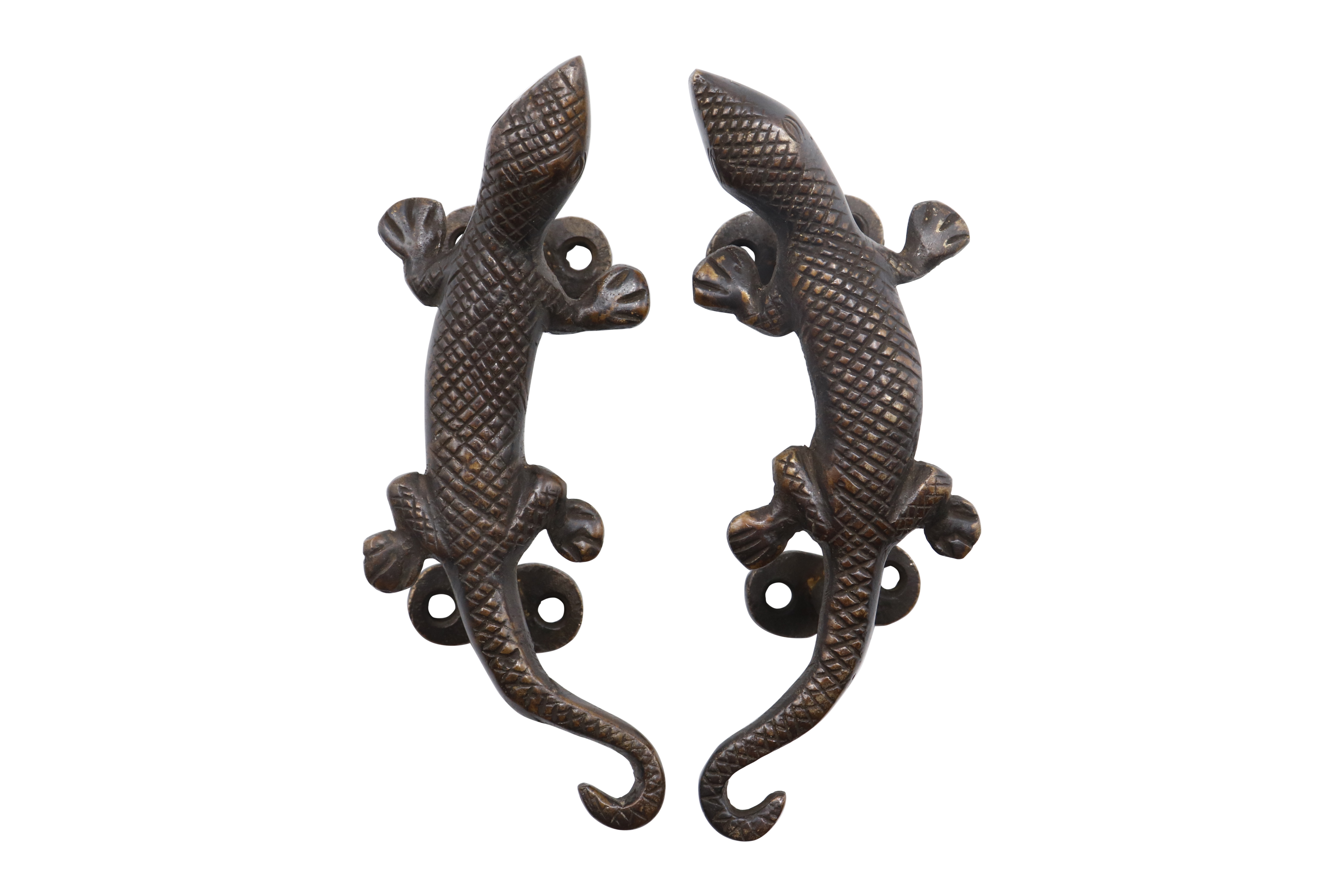 Dark Brass Lizard Door Handles - a Pair