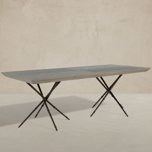 Davenport Rectangle Dining Table, Cerused Natural Gray/Antique Bronze