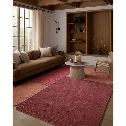Davi Handwoven Color Block Rug, Red/Orange