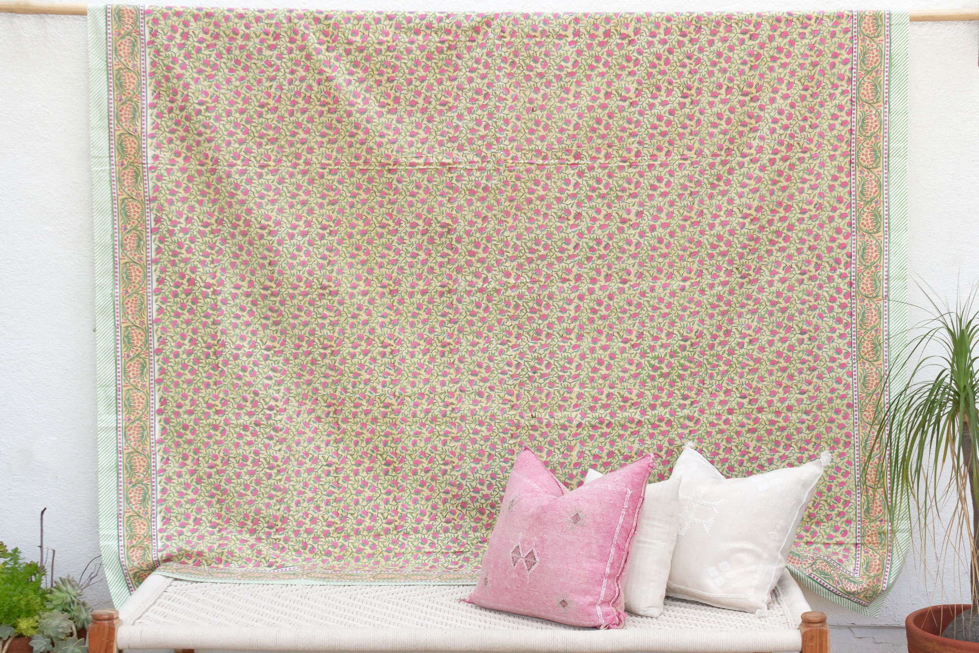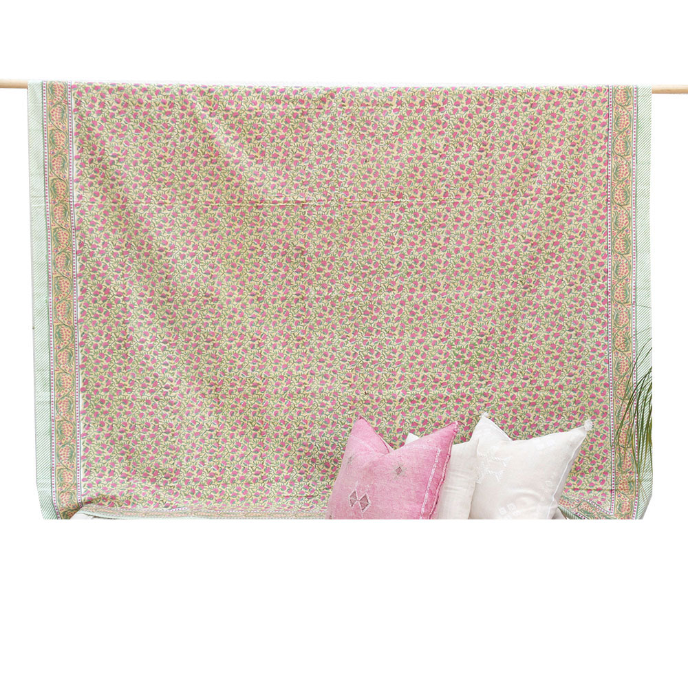 Delicate Blossom,Blockprint Coverlet