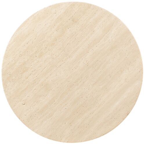 Driftwood Round Travertine Top Side Table, Black/Natural
