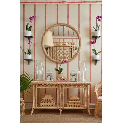 Celebrated interior designer Amanda Lindroth, known for her breezy, island-infused aesthetic, is unveiling her first collection of home accessories, furniture, and lighting in partnership with Chelsea House. The line is a natural extension of her signature style rooted in island elegance and gracious hospitality. “This collection is about transporting people,” says Lindroth. “It’s for anyone who dreams of a home that feels collected, unhurried, and joyfully full of friends.” The collection celebrates craftsmanship and materials long synonymous with island life, while offering a fresh take for modern interiors. With a palette of sun-bleached neutrals, Lindroth’s designs evoke verandas dappled in golden light, cocktail hours by the sea, and the enduring charm of old-world Caribbean estates. From hand-woven accessories to statement furniture pieces, the collection reflects Lindroth’s belief that a well-lived home should be both elegant and effortless. With roots in Palm Beach and a home base in Nassau, Amanda brings a globally minded yet distinctly island sensibility to her designs. Each product —whether a Regency-inspired wicker étagère, a large round drinks tray, or scallop-trimmed side chair—tells a story of barefoot glamour and gracious island living.