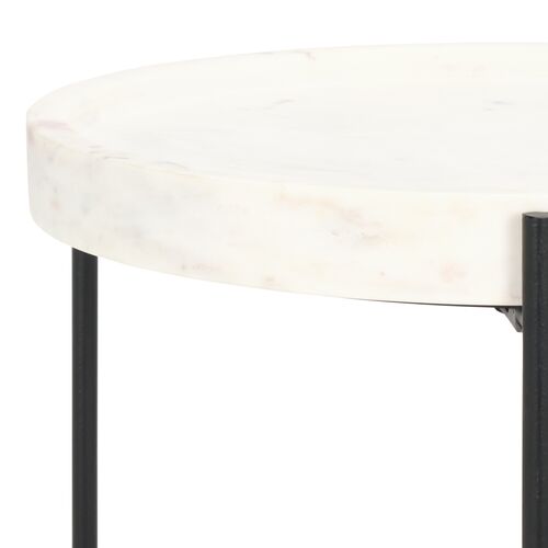 Nova Round Marble/Iron Side Table, White/Black
