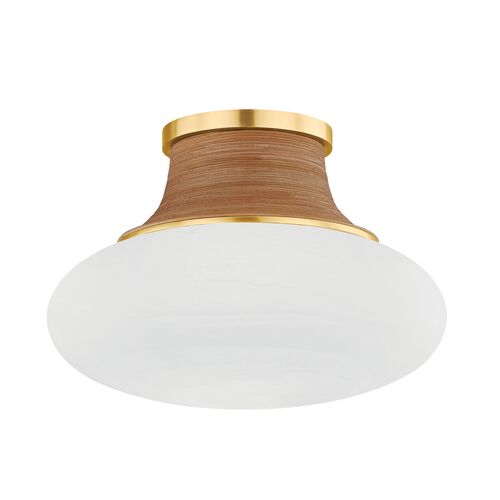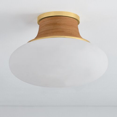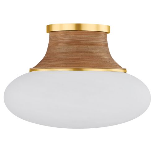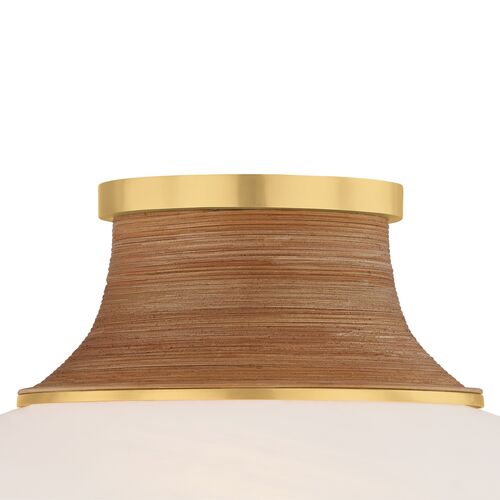 Eirlys Flush Mount, Aged Brass/Matte Cloud Glass/Rattan